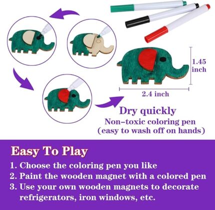 Worgree DIY Wooden Magnets, 36 pcs Wooden Art Craft Supplies Painting Kit