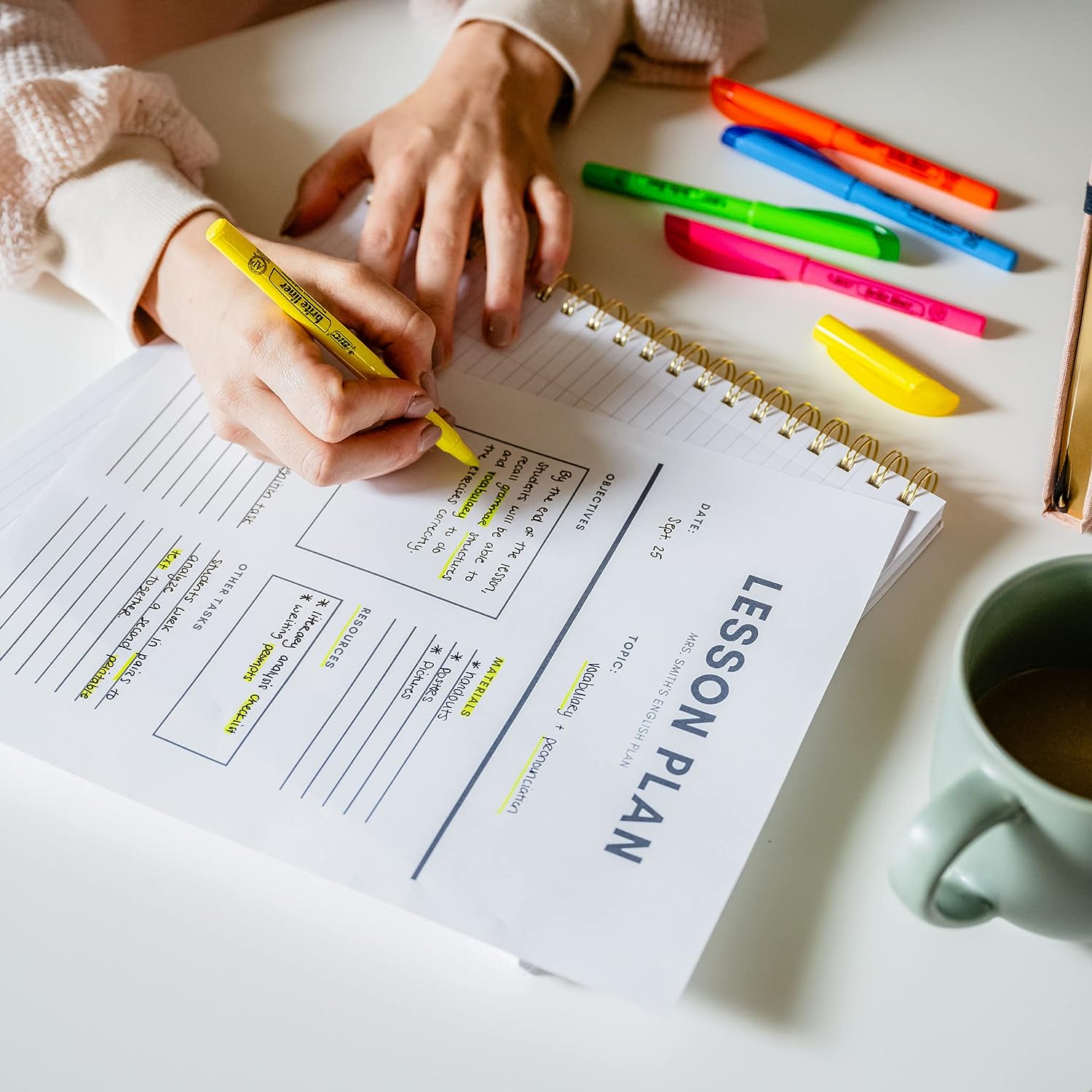 - Highlighter set with translucent ink that emphasizes what’s important on the page without obscuring the highlighted text